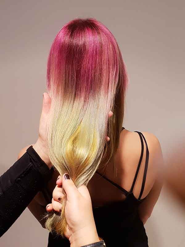 Hierbei sind Behandlungszeiten von 4-6 Stunden absolut normal, an dem die Friseurin die Haarfarbe pinselt, pflegt, mattiert und stylt.